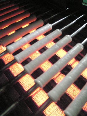 鉄の棒に巻いたちくわを、火にかけます